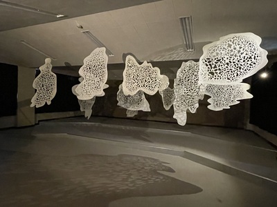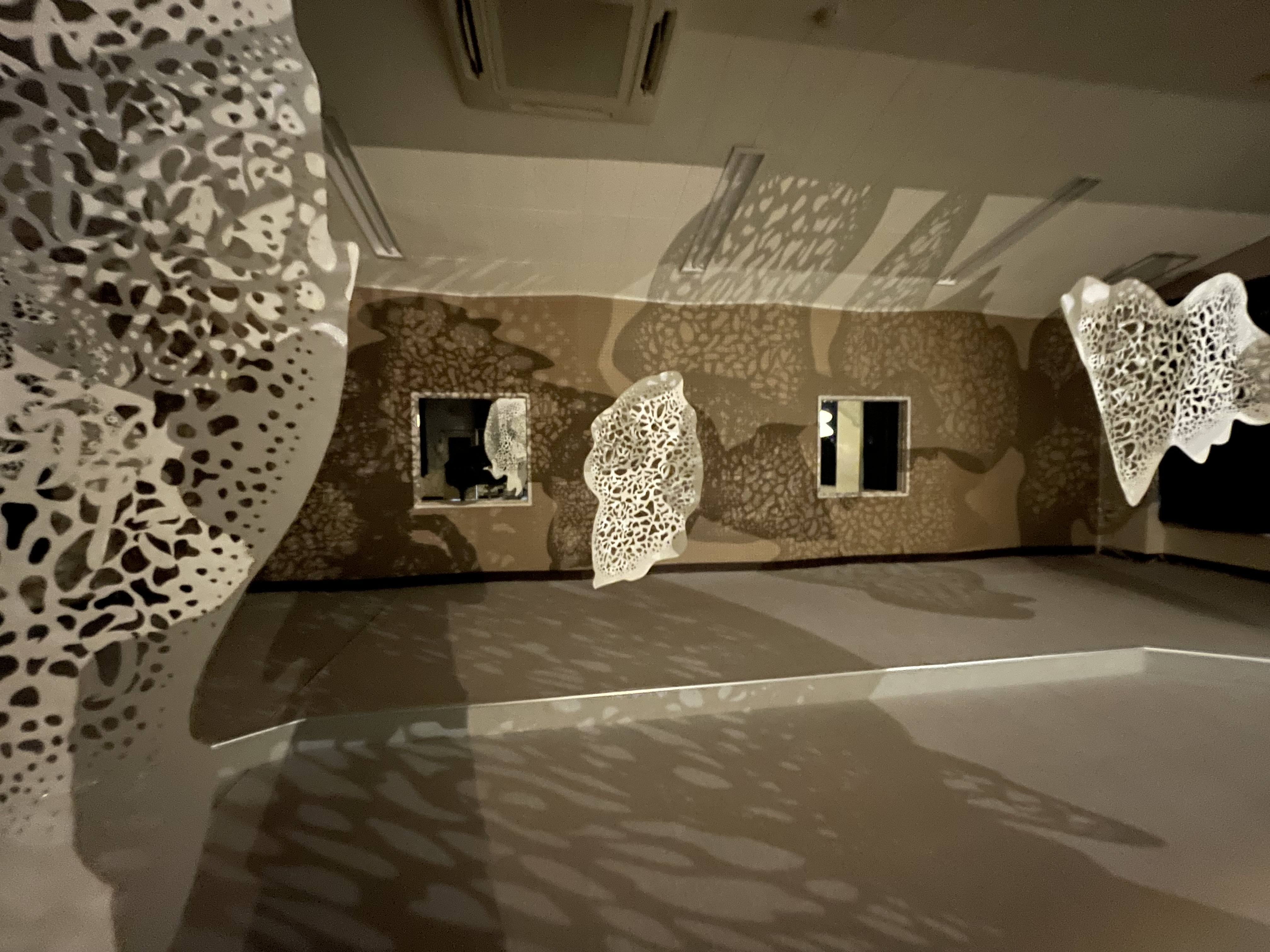 数多の音の粒たちが音楽室いっぱいに響き渡っていた遠い日の記憶を辿る。音の波の中には旧琴南中学校の校歌を散りばめた。校歌は専らその土地柄やアイデンティティが集約される事が多く、それ自体もまた、巣立った子供たちのルーツ足り得るのかもしれない。現実と空想、記憶の断片に触れ、自身の思い出と重ね、想いを馳せるような瞑想的な空間を目指した。